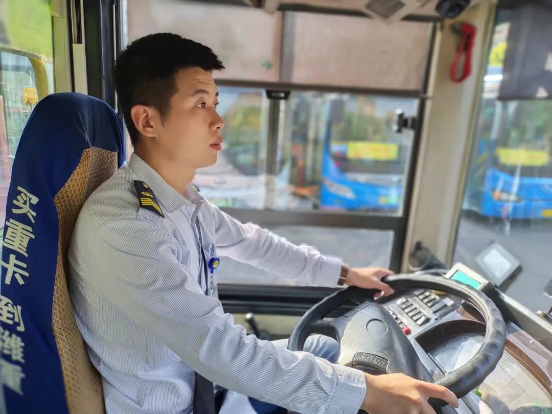 楊再心2020年5月份進(jìn)入徐州公交新巴士公司工作,別看他年齡小,干起活來一點(diǎn)也不馬虎,踏上他的車第一感覺就是干凈整潔,不論是出車前,還是收車后,他都會對車輛各個部件進(jìn)行檢查。國慶當(dāng)天早上5點(diǎn)50分,楊再心駕駛著2068號公交車從公交修造廠站緩緩駛出,這名90后公交駕駛員已是連續(xù)第二年在國慶假期放棄休息,堅(jiān)守崗位應(yīng)對國慶黃金周客流高峰。“請往后走,要關(guān)門了。”“注意扶好!”進(jìn)站前50米車提前減速,進(jìn)站停穩(wěn)后3秒再開啟車門,乘客落座站穩(wěn)扶好后觀察3秒再起步,楊再心嚴(yán)格按照公司要求行車。“安全駕駛車輛,把乘客送到目的地,是我們公交駕駛員的職責(zé)。”楊再心說。