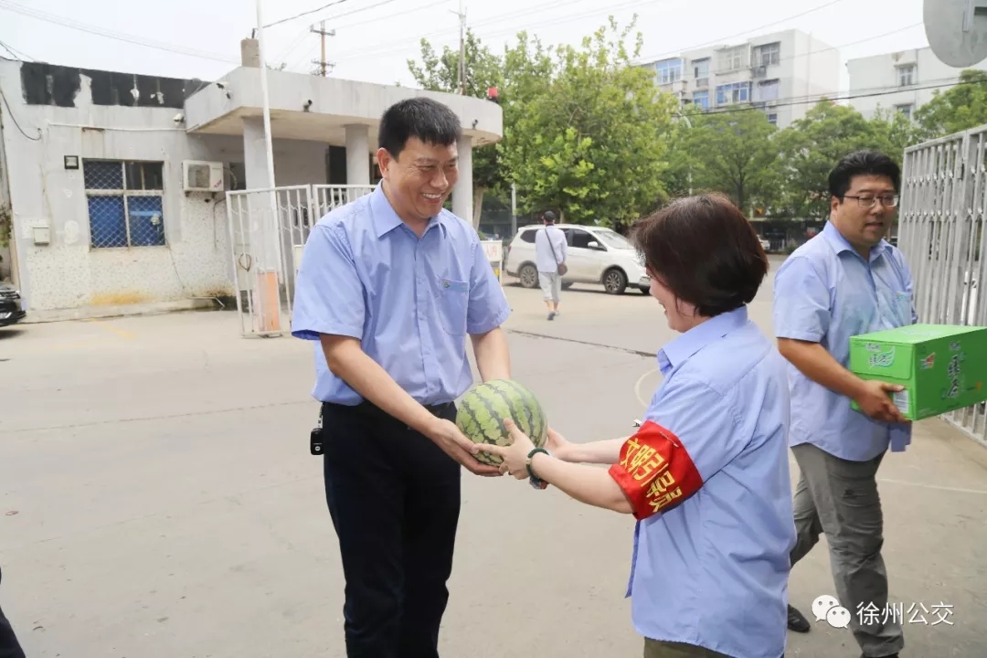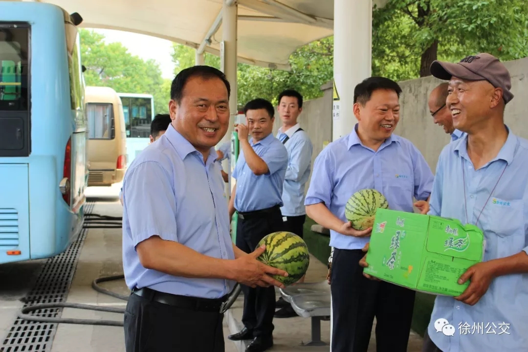 為切實(shí)關(guān)心關(guān)愛堅(jiān)守一線的公交員工,徐州公交認(rèn)真開展“夏日送清涼”活動,7月22日上午11:45,領(lǐng)導(dǎo)班子分4組深入站臺、調(diào)度室、修理車間等17處基層一線,為奮戰(zhàn)一線、堅(jiān)守崗位的員工送上涼茶、西瓜等清涼物資,向冒著高溫酷暑、辛勤工作的一線員工表示敬意和慰問,叮囑他們落實(shí)好各項(xiàng)防暑降溫措施,確保在高溫環(huán)境下市民能正常清涼出行。