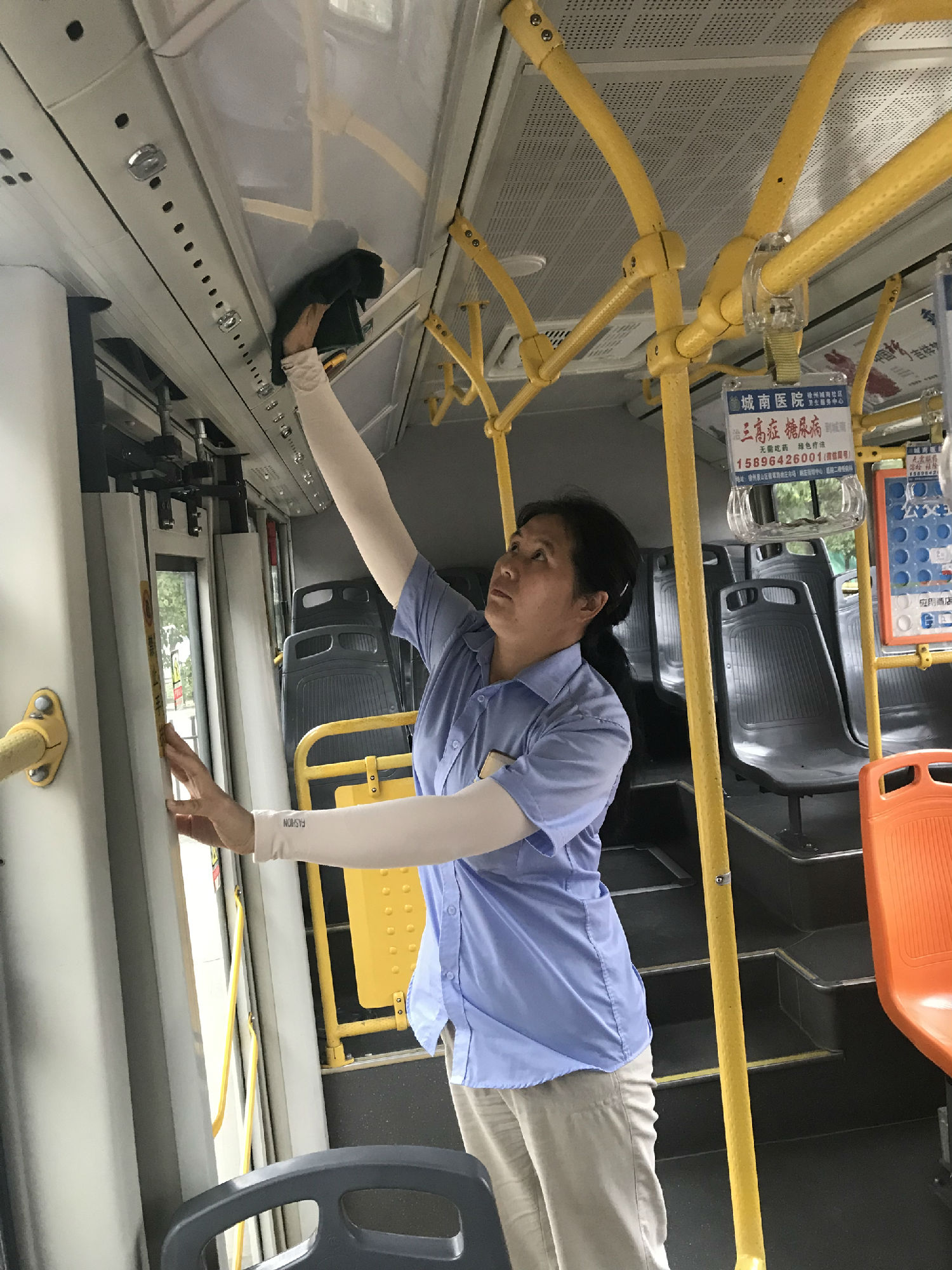 而同時(shí),文明城市復(fù)檢及市民對(duì)公交出行期望值的提升,對(duì)車輛衛(wèi)生工作提出了更高的標(biāo)準(zhǔn)和要求。作為主要負(fù)責(zé)公交3路車輛衛(wèi)生的現(xiàn)場(chǎng)服務(wù)權(quán)洪,心中只有一個(gè)念頭,就是想方設(shè)法把車輛衛(wèi)生弄干凈!