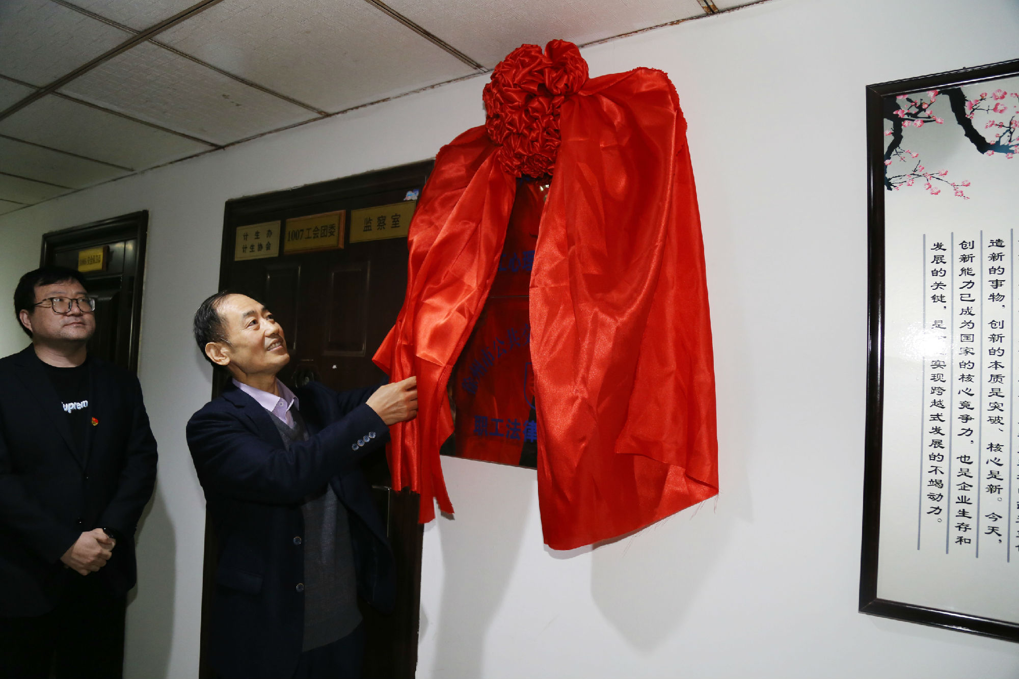 為進一步落實公交“家文化”建設工程,幫助職工維護自身合法權益,關注職工心理健康,推動創(chuàng)建幸福和諧企業(yè),3月1日上午,徐州公交集團職工法律援助中心、職工心理健康疏導中心在公交大廈10樓掛牌成立。集團黨委書記、董事長高守江,紀委書記、工會主席袁夫松現(xiàn)場揭牌。