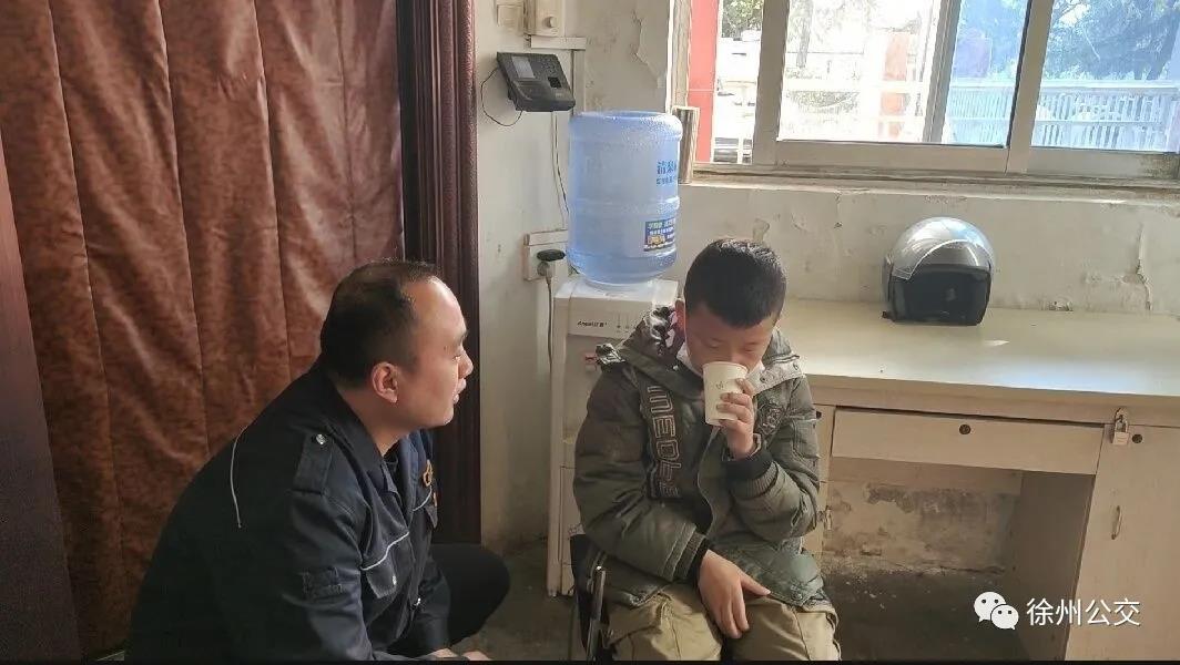 車隊(duì)服務(wù)人員閆翔給男孩倒了杯熱水,搬來(lái)椅子讓其坐下并耐心詢問(wèn)道:“小朋友,家住哪兒?知道爸爸媽媽的電話嗎?可男孩只說(shuō)自己叫蔣彥君,今年12歲,媽媽在東站賣充電寶,家庭詳細(xì)住址不知道,家長(zhǎng)電話也不記得。聽(tīng)完后,閆翔趕緊用手機(jī)給孩子拍了張照片,發(fā)給東站現(xiàn)場(chǎng)調(diào)度員王海俠,讓其到東站查找,可王海俠問(wèn)了個(gè)遍,也沒(méi)找到男孩的家人。最后,閆翔撥打了“110”報(bào)警電話,向民警求助。