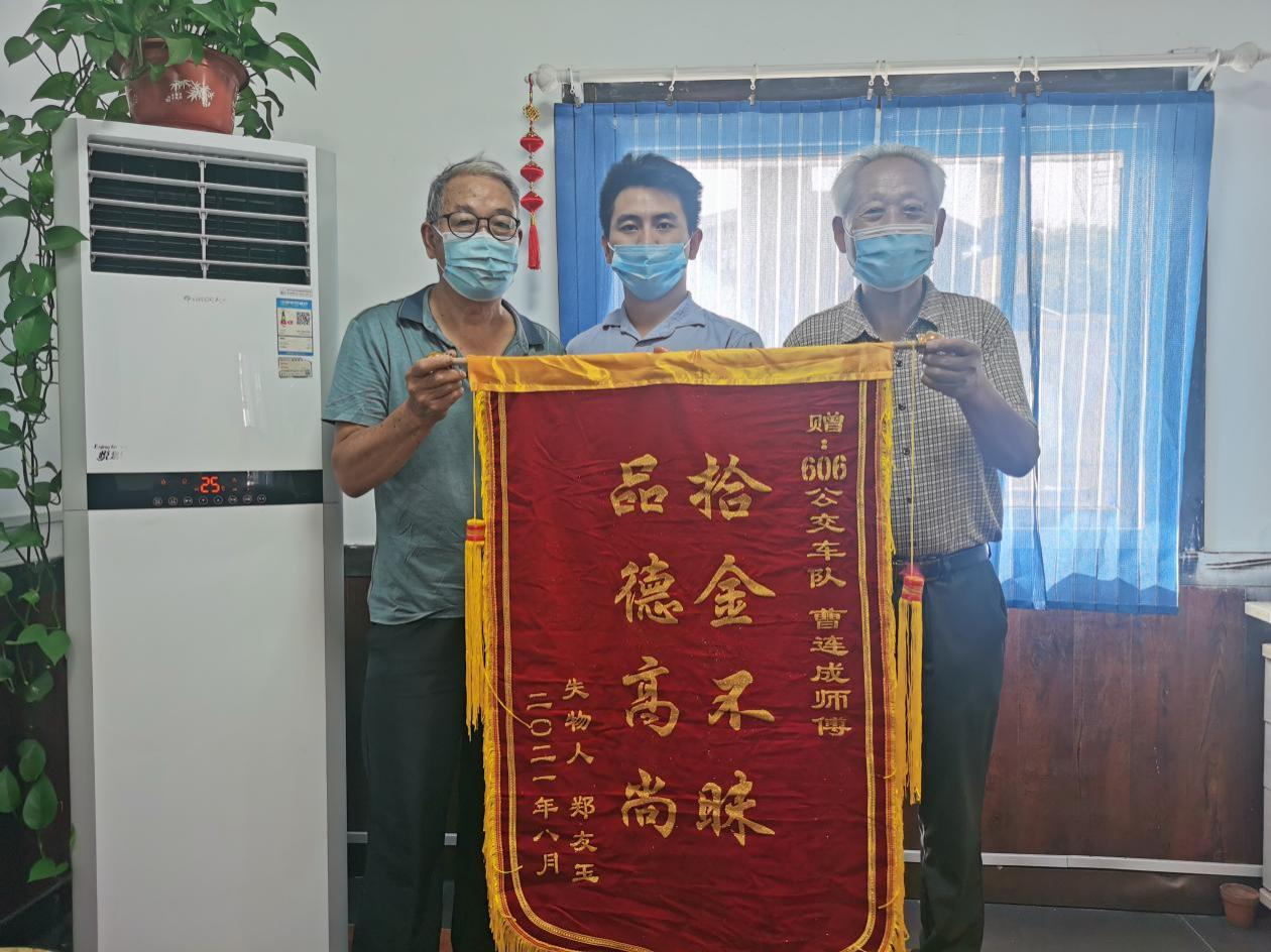 8月30日中午11點左右,市民鄭先生與同伴在大福源乘坐606路公交車趕往九七醫(yī)院就醫(yī),到醫(yī)院后發(fā)現(xiàn)錢包丟,鄭先生萬分著急,在同伴的提醒下,他來到606路韓山調(diào)度室尋找失物。果不其然,鄭先生的錢包被駕駛員曹連成師傅送到調(diào)度室妥善保管。鄭先生萬分感謝說道:“錢包里除了現(xiàn)金和各類銀行卡外,還有醫(yī)保卡、社???,補辦十分麻煩,咱們司機師傅真是幫了大忙。”9月1日,鄭先生特意送來錦旗表達謝意。