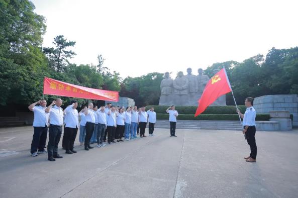 最后,在淮海戰(zhàn)役烈士紀念塔前,退伍軍人及黨員們面向黨旗莊嚴宣誓,一起重溫入黨誓詞,鏗鏘有力的誓言堅定著為黨的事業(yè)、為共產主義奮斗終生的決心。