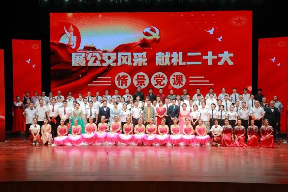 為激勵廣大黨員群眾以實際行動迎接黨的二十大勝利召開,8月10日下午,徐州公交集團成功舉辦“展公交風(fēng)采 獻禮二十大”情景黨課。市交控集團黨委委員、紀委書記胡濤,市交通運輸局宣傳教育處處長高夫健,徐州廣播電視傳媒集團總編室主任劉建玲,市公交集團外部董事,市交控集團黨建工作部、群眾工作部部門領(lǐng)導(dǎo),以及公交集團黨委班子成員、先進勞模、職工代表共450余人出席并觀看演出。