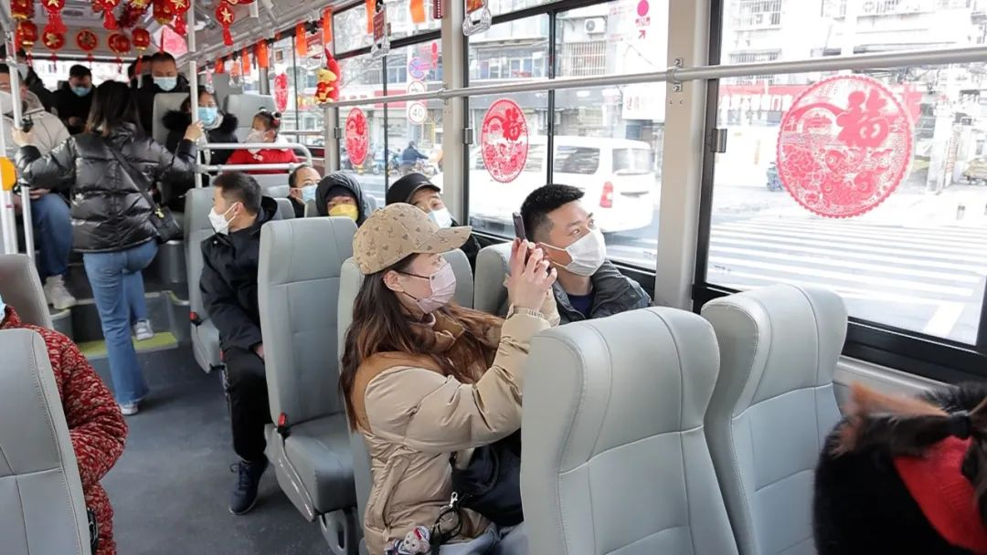 在嶄新的新能源公交車上,市民們不僅可以打卡“年味車廂”,還可以享受提檔升級的軟座。同時,為了方便市民春節(jié)出行購物需求,新車的車身還張貼了“徐州定制公交”“徐州公交民生物流平臺”“徐州公交維修保養(yǎng)中心”小程序等便民服務“貼士”。