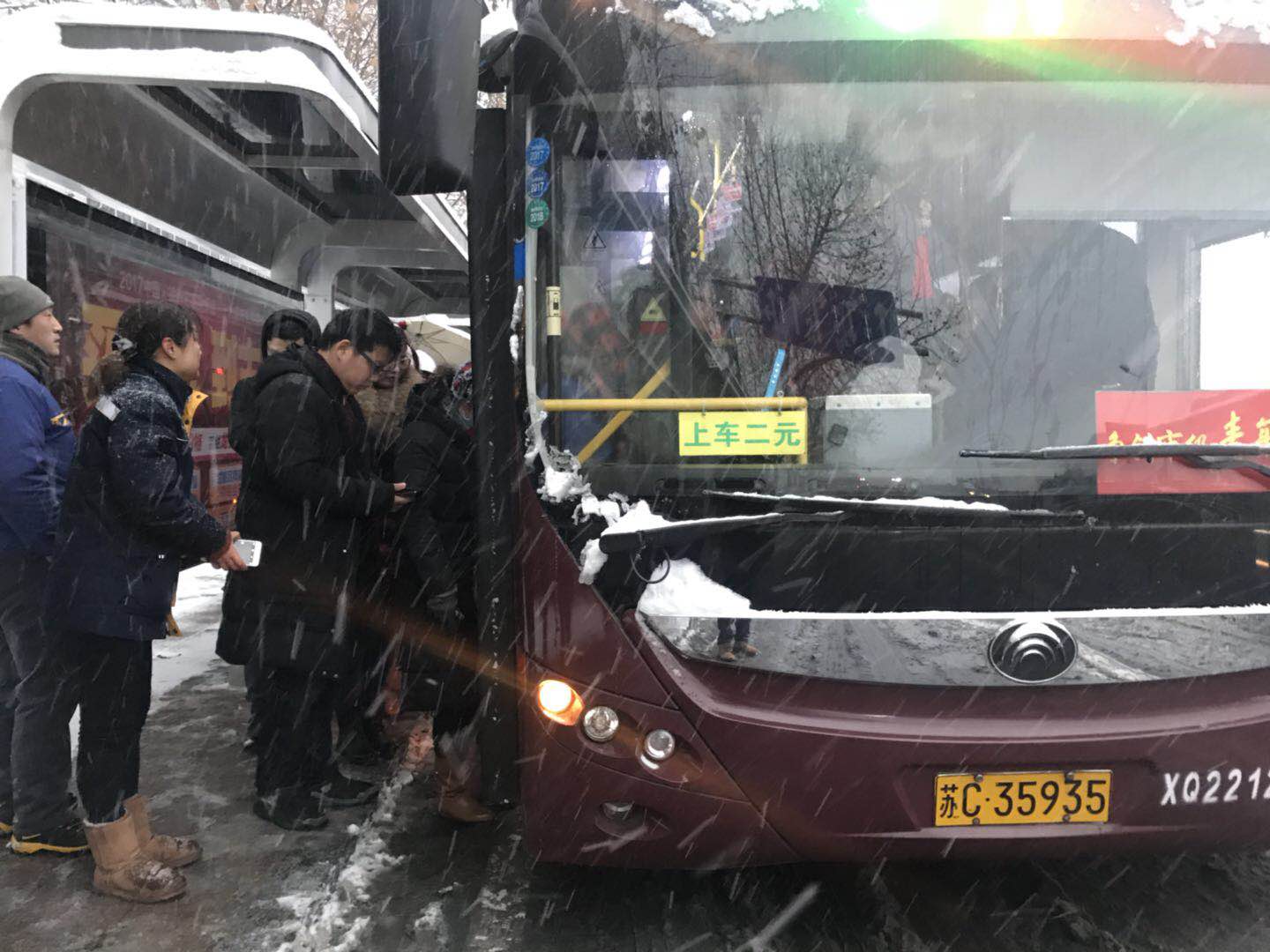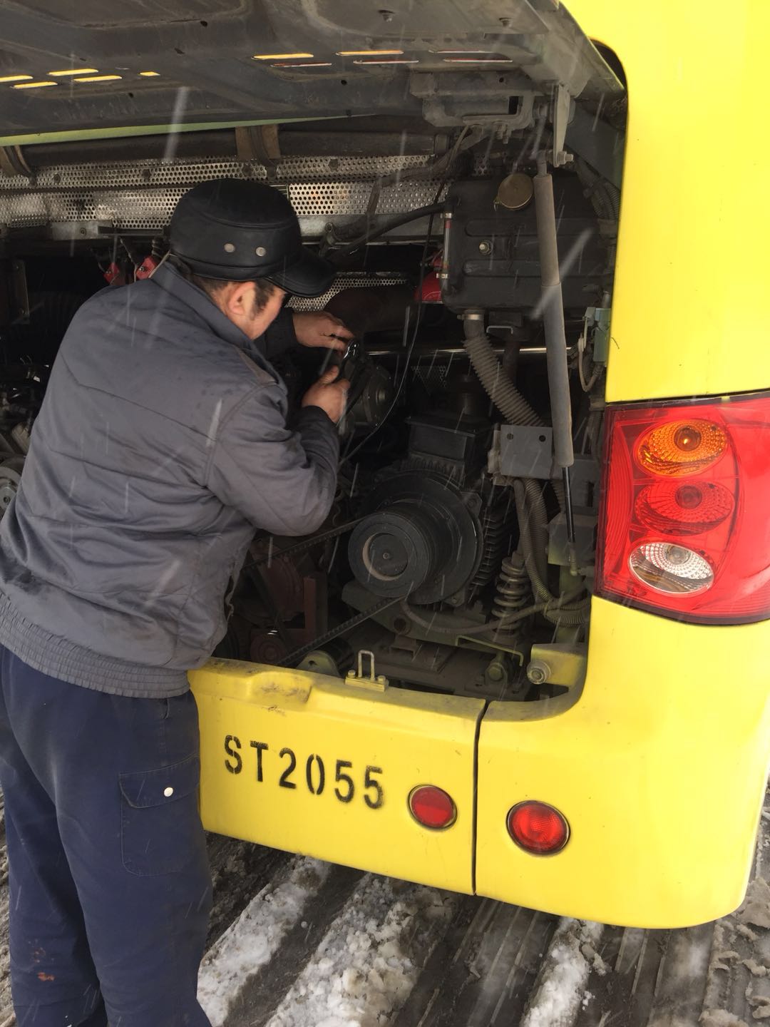 為保證冰雪嚴(yán)寒天氣公交車運(yùn)力正常,公司提前對2300余輛公交車進(jìn)行了安全性能的全面普查及換季保養(yǎng)作業(yè)項(xiàng)目,進(jìn)一步加強(qiáng)車輛的日常維護(hù)及“三檢”,嚴(yán)格執(zhí)行維保規(guī)范,確保車輛設(shè)備的防凍液冰點(diǎn)值不低于-15℃,并提前更換了-10號柴油,防止燃?xì)廛囕v冰堵。修理人員冒著風(fēng)雪,手凍得通紅仍堅(jiān)持在現(xiàn)場搶修車輛;智能調(diào)度平臺利用3G視頻實(shí)時(shí)監(jiān)控線路運(yùn)營情況,利用車載語音不斷播放安全提示,做好雪天行車安排;公交出租450輛出租車全部出車……4日晚,市區(qū)雪深已達(dá)375px,氣溫-7℃。大雪造成高鐵晚點(diǎn)6小時(shí),10路線立即增派7輛加班車增加24個(gè)班次,直至5日凌晨4:07最后一班車發(fā)車,堅(jiān)決不滯留一名乘客,全力保障了雪天市民的安全出行。